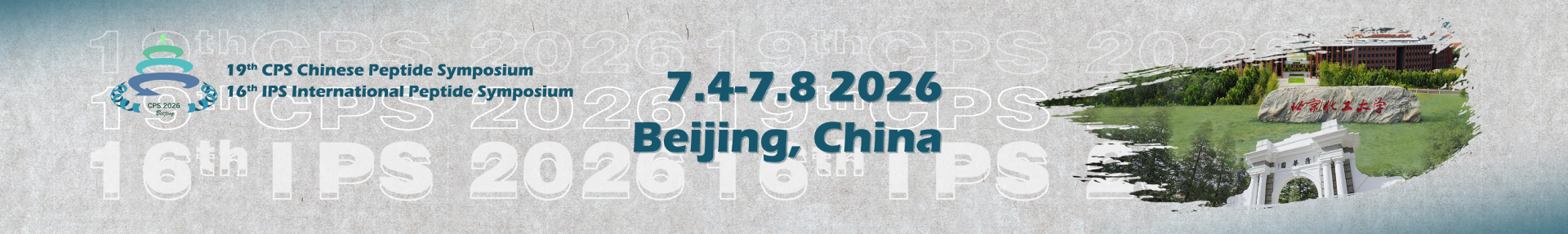 It is our great honor to organize the 19th Chinese International Peptide Symposium (CPS2026), held in conjunction with the 16th International Peptide Symposium, to be hosted in Beijing, China, in 2026.